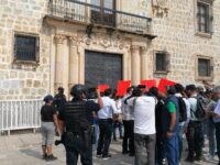 Vecinos de la agencia de Montoya protestan en los accesos al Palacio Municipal de Oaxaca de Juárez